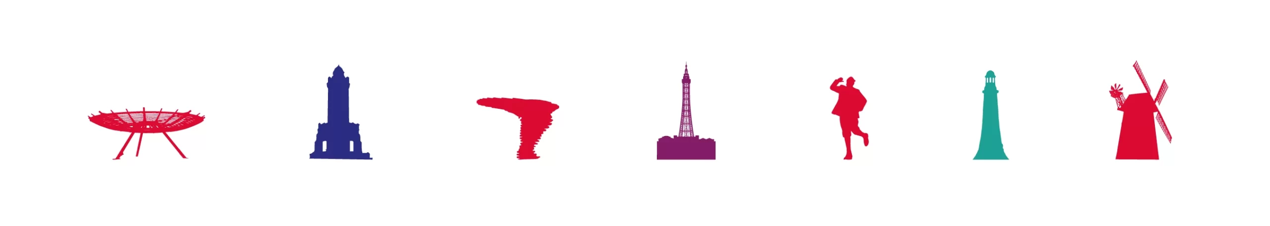For this challenging brief we conducted brand workshops with representatives of each area and discussed the possibilities of a ‘common thread’ to the visual identity. One approach, which was widely favoured by the communications teams, was to use regional specific landmarks as support graphics for the identity. These silhouetted landmarks would then be used as footers on Microsoft templates and on printed marketing collateral.