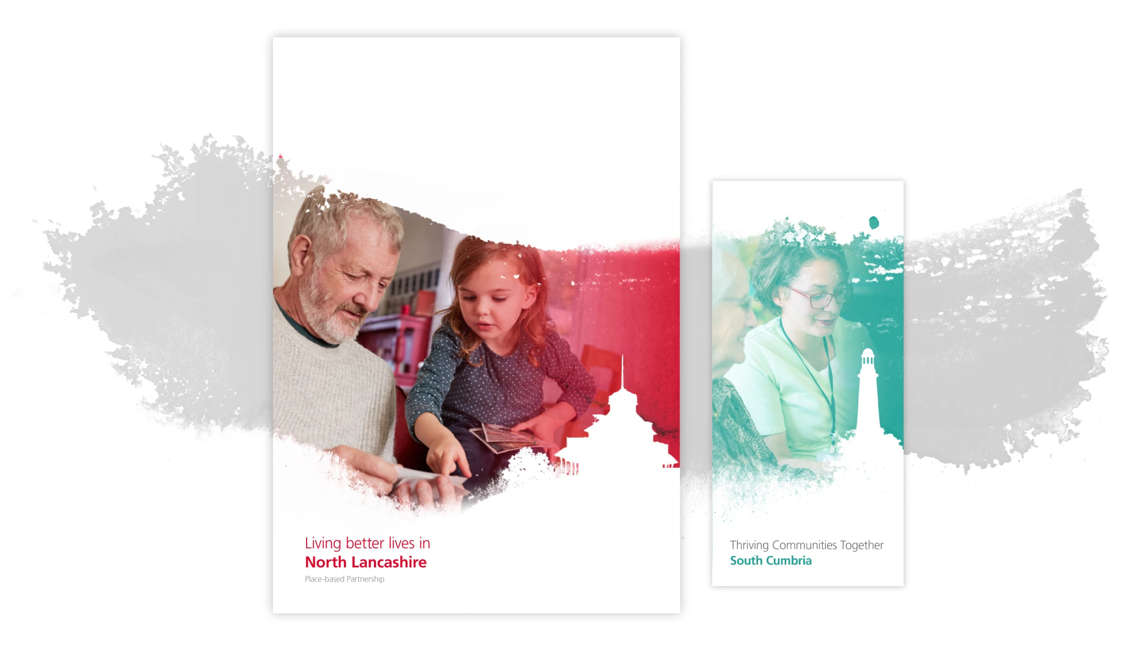 But these simple landmarks didn’t reflect the core audience of the brand, it’s people. To do this I used a brushstroke graphic which represented the spirit, freedom and energy of the Lancashire and South Cumbria people, and together with localised photos, created a unique and memorable brand.